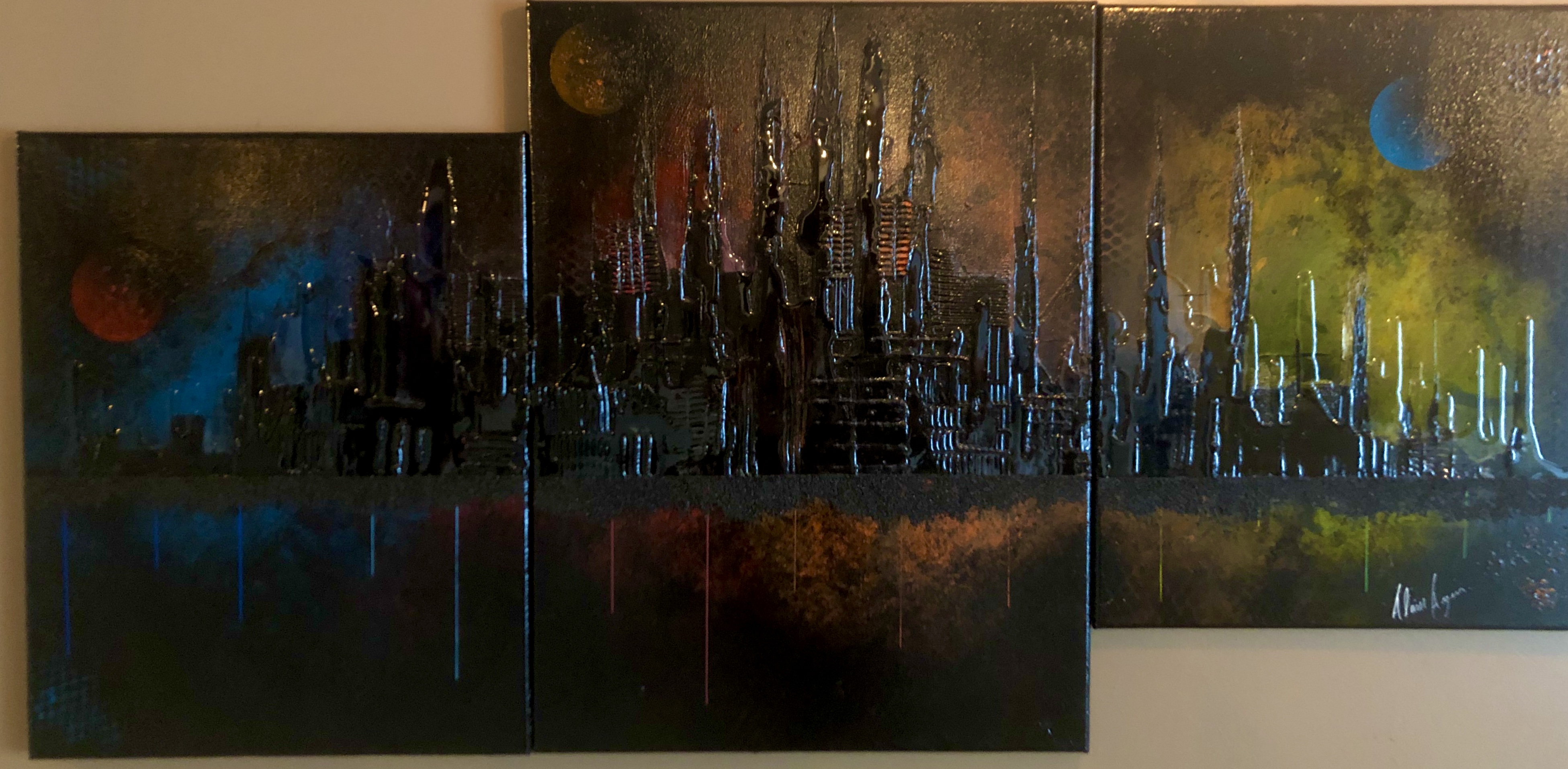Tableaux représentant une skyline dans un brouillard laissant transparaître de belles couleurs vivent. Idéal dans un décor contemporain, moderne ou encore éclectique.